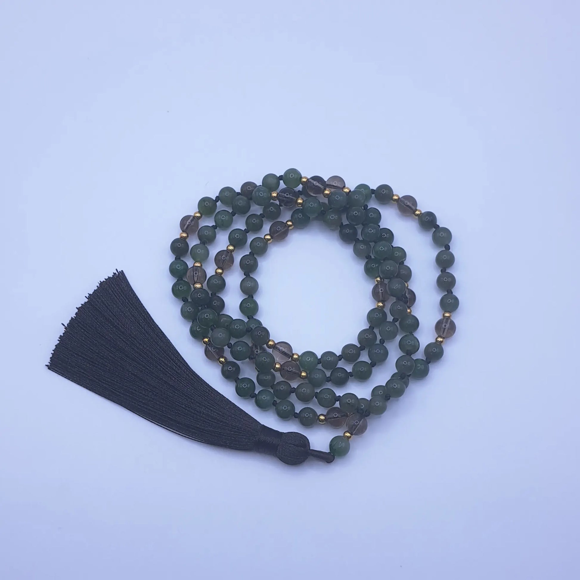 Handgeknüpfte Mala mit Rauchquarz & Jade